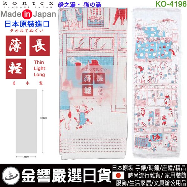 【金響日貨】kontex KO-4196 貓之湯(日本原裝):::日本製,今治毛巾,純棉毛巾,洗臉巾,洗澡巾,紗布巾,長毛巾,刷卡或3期