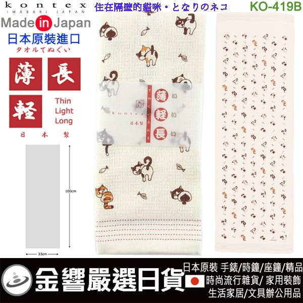 【金響日貨】kontex KO-419B 隔壁的貓(日本原裝):::日本製,今治毛巾,純棉毛巾,洗臉巾,洗澡巾,紗布巾,長毛巾,刷卡或3期