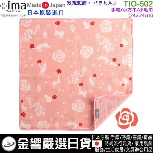 【金響日貨】現貨,+ima TIO-502 玫瑰和貓(日本原裝):::日本製,今治毛巾,WAFUKA,和布華,愛媛縣,小毛巾手帕,小毛巾,小方巾,刷卡或3期,4543479112752