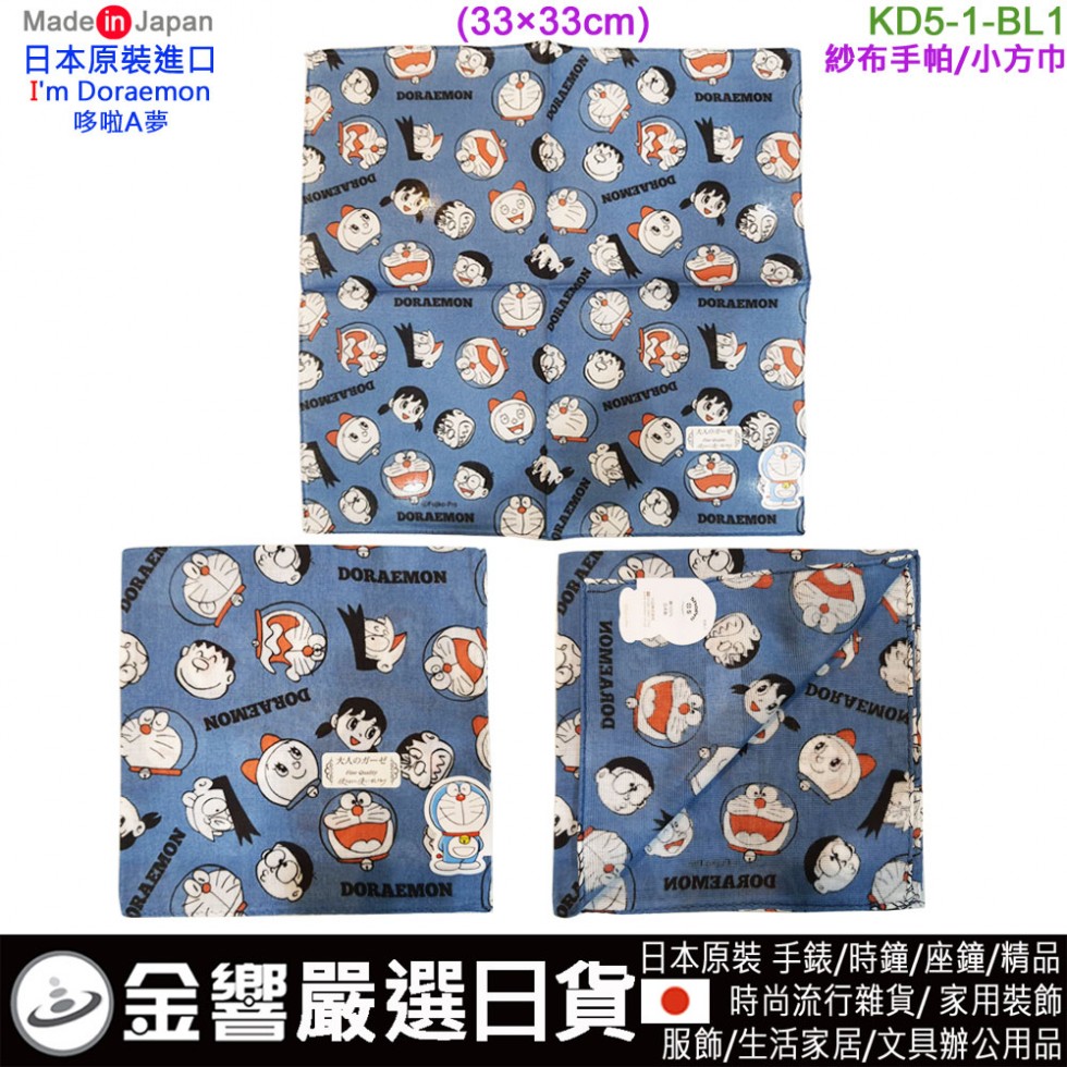 【金響日貨】現貨,KAWABE KD5-1-BL1(日本原裝):::日本製,Doraemon,哆啦A夢,雙層純棉紗布手帕,小毛巾,小方巾,小手帕,刷卡或3期
