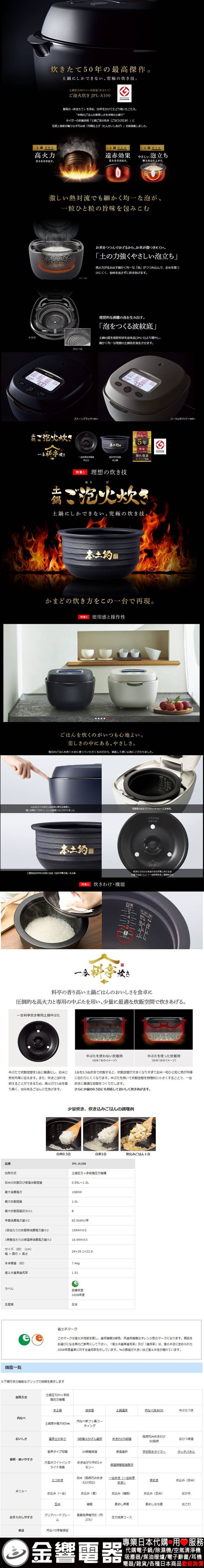 【金響代購】空運,TIGER JPL-A100-WR(日本國內款):::2020年最新,日本製,虎牌,土鍋壓力IH電子鍋,炊きたて,土鍋ご泡火炊き,5.5合炊,6人份,刷卡或3期,JPLA100line