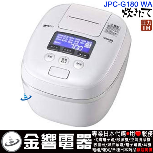 dot 【金響代購】空運,TIGER JPH-G180WA(日本國內款):::2019年最新,日本製,虎牌,壓力IH電子鍋,圧力IH炊飯器,1升炊き,10人份,炊きたて,360°デザイン,刷卡或3期,JPCG