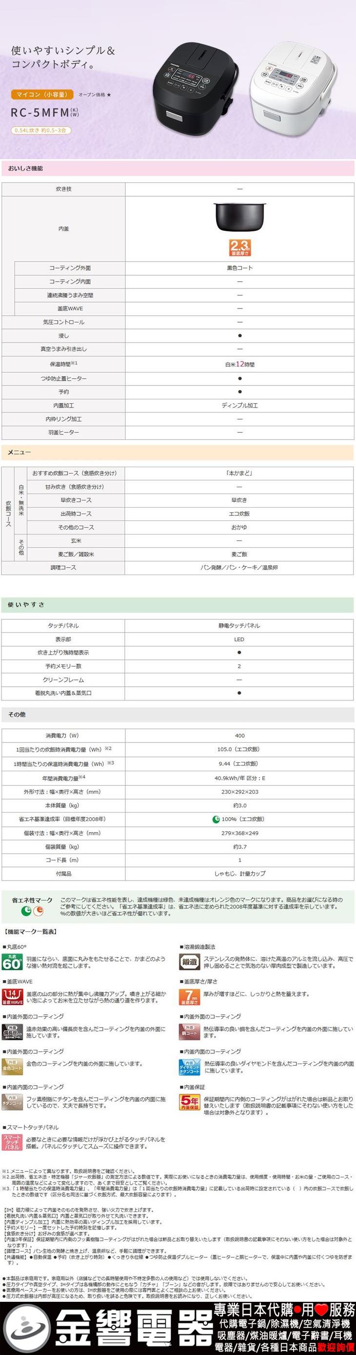 【金響代購】空運,TOSHIBA RC-5MFM-K(日本國內款):::東芝,微電腦電子鍋,3合炊き,4人份,刷卡或3期,RC5MFM