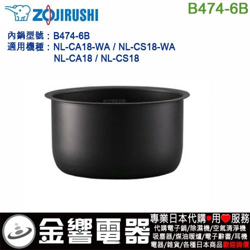 【金響代購】空運,ZOJIRUSHI B474-6B(日本國內款):::象印電子鍋內鍋,NL-CA18-WA,NL-CS18-WA,用line