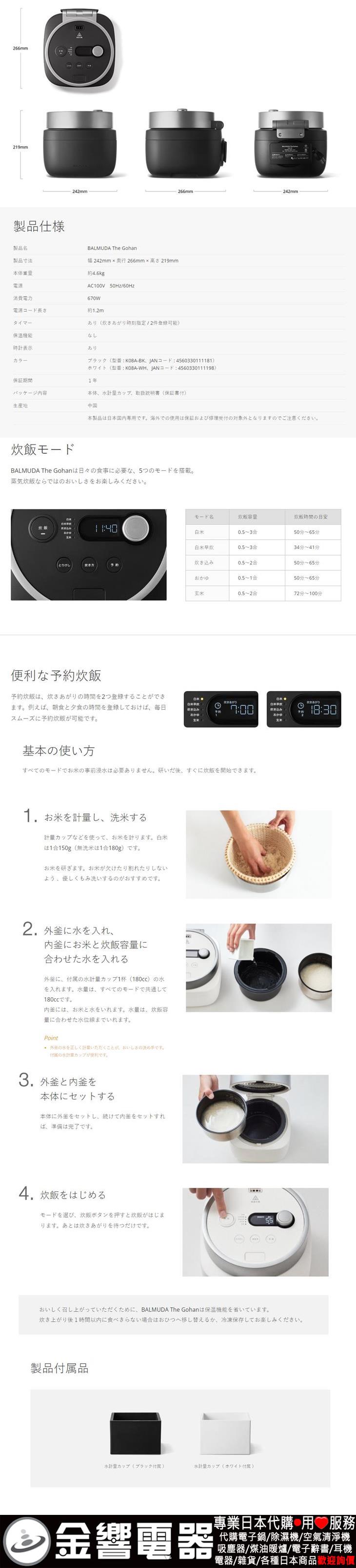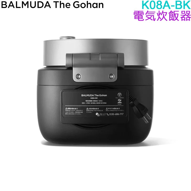 【金響代購】空運,BALMUDA K08A-BK黑色(日本國內款):::中國製,BALMUDA The Gohan,蒸氣電子鍋,3合炊,4人份,刷卡或3期零利率,K-03A