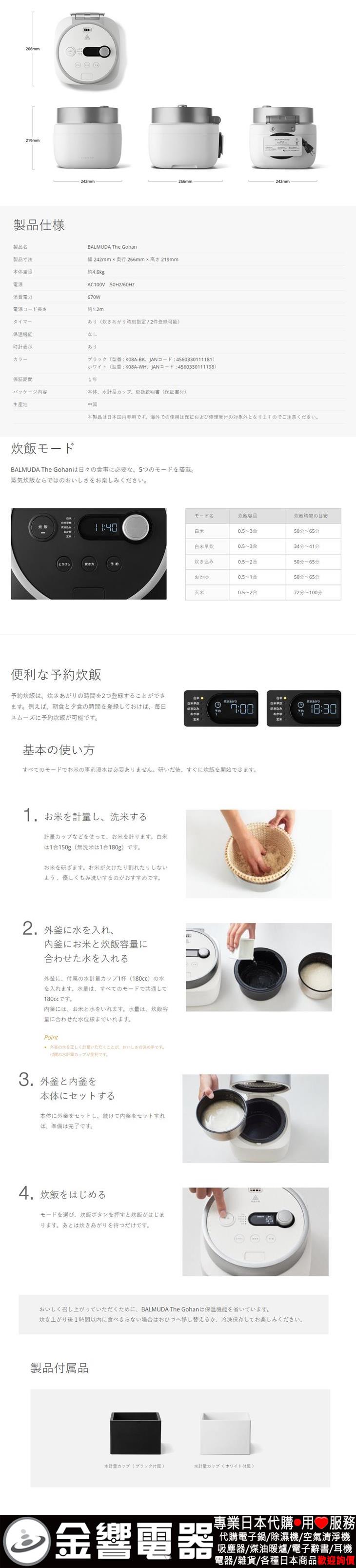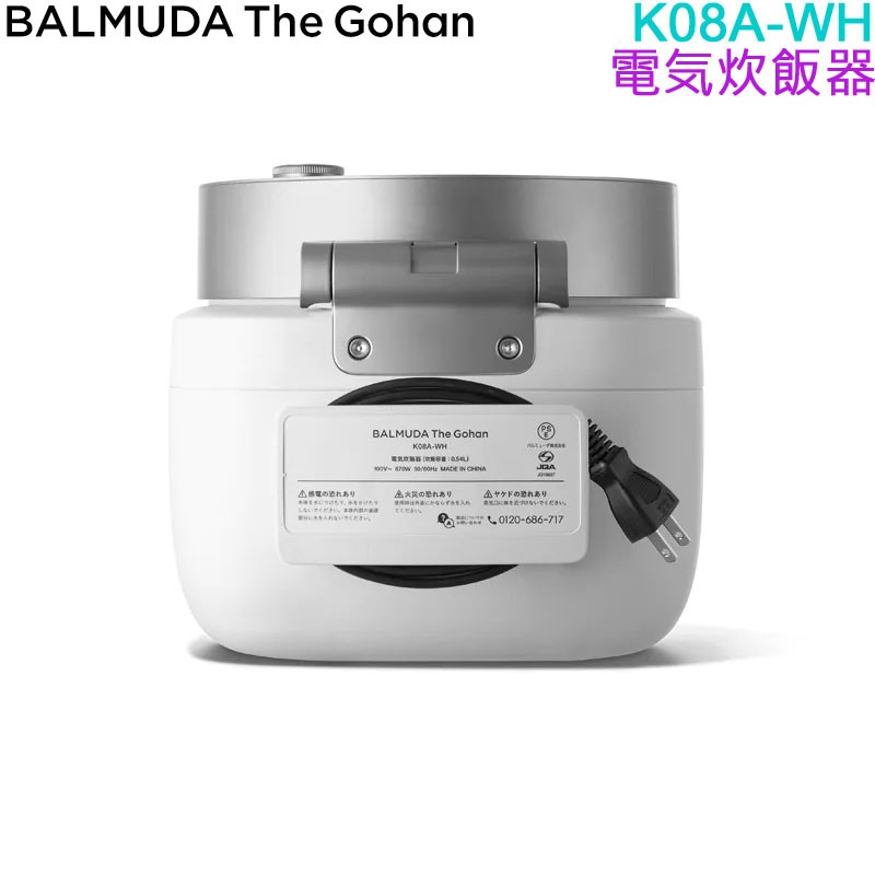 【金響代購】空運,BALMUDA K08A-WH白色(日本國內款):::中國製,BALMUDA The Gohan,蒸氣電子鍋,3合炊,4人份,刷卡或3期零利率,K-03A