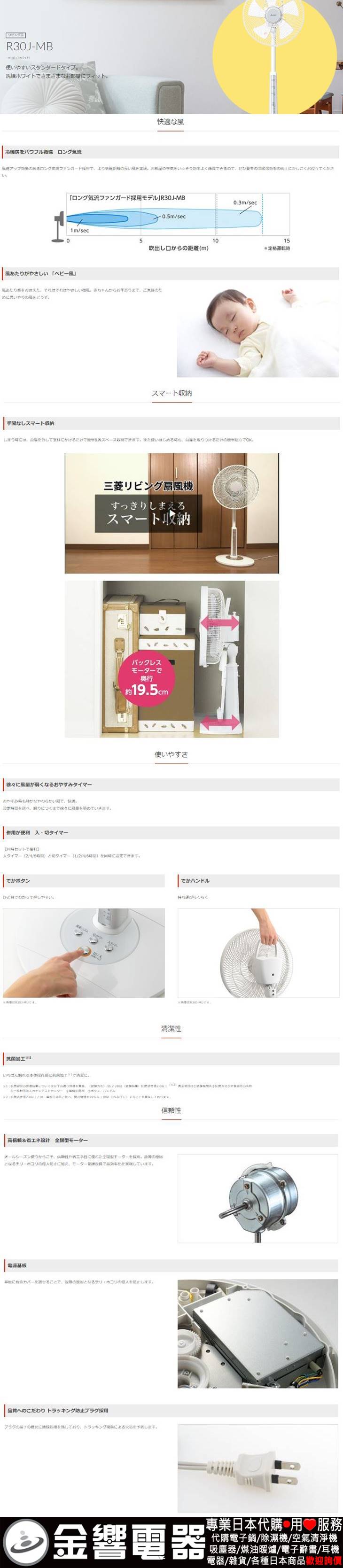 dot 金響電器‧金響日貨:::歡迎蒞臨金響門市參觀選購 EST.1995 » 日本代購 » 生活家電 » 電風扇(日本國內款) » 三菱電風扇(日本國內款) » 【金響代購】空運,MITSUBISHI R30J-MB-W(日本國內款):::2022年,三菱電風扇,立扇,AC交流馬達,沒有遙控器,MITSUBISHI R30JMB
