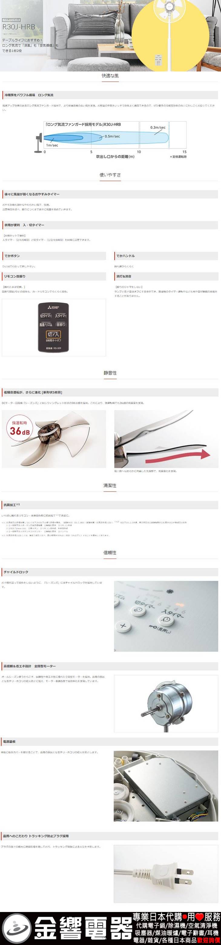 【金響代購】空運,MITSUBISHI R30J-HRB-W(日本國內款):::2022年,三菱電風扇,立扇,AC交流馬達,附遙控器,R30JHRB