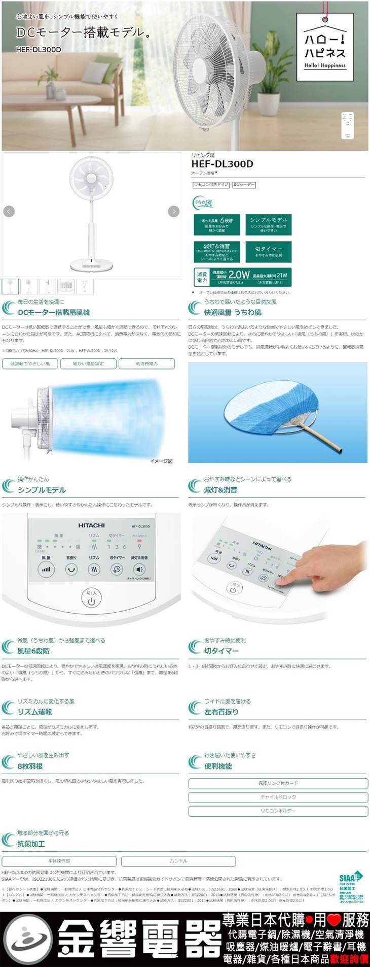【金響代購】空運,HITACHI HEF-DL300D(日本國內款):::2022年,日立DC直流馬達節能電風扇,立扇,附遙控器,HEFDL300D