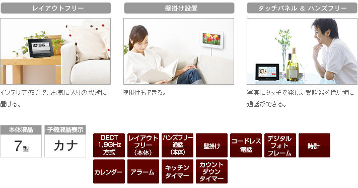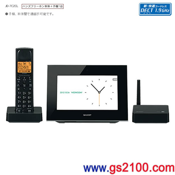 代購,SHARP JD-7C2CL-B黑色(日本國內款):::家用DECT 1.9GHz無線電話(彩色7吋液晶數位相框主機+1台子機),免運費,刷卡不加價或3期零利率