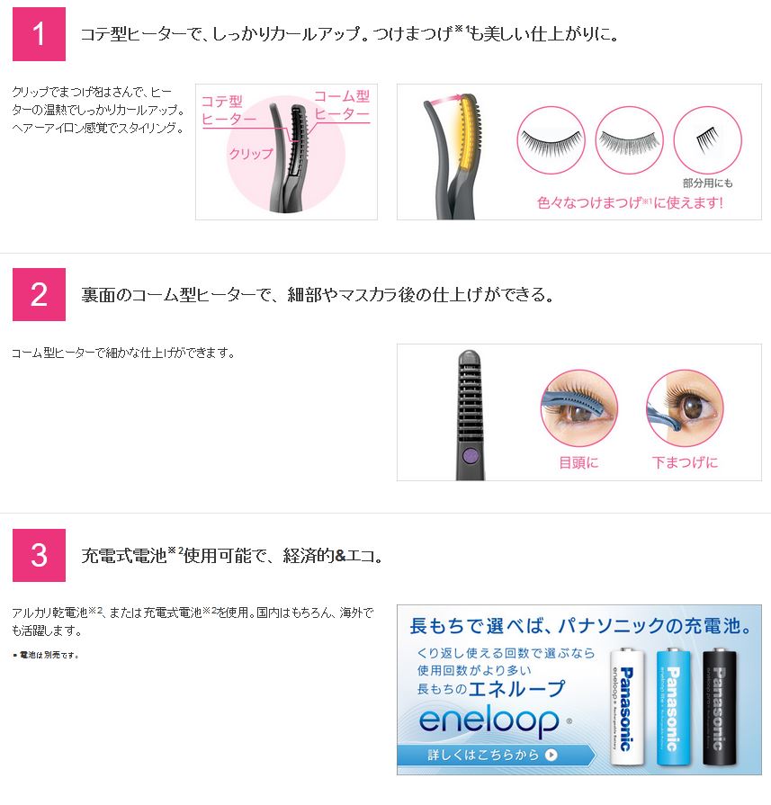 dot 金響電器‧金響日貨:::歡迎蒞臨金響門市參觀選購 EST.1995 » 日本代購 » 美容美髮 » 燙睫毛器(日本國內款) » 代購,Panasonic EH-SE70-W(日本國內款):::國際牌電燙睫毛夾(假睫毛用),Mi-ta-me up,免運費,刷卡不加價或3期零利率,EHSE70P