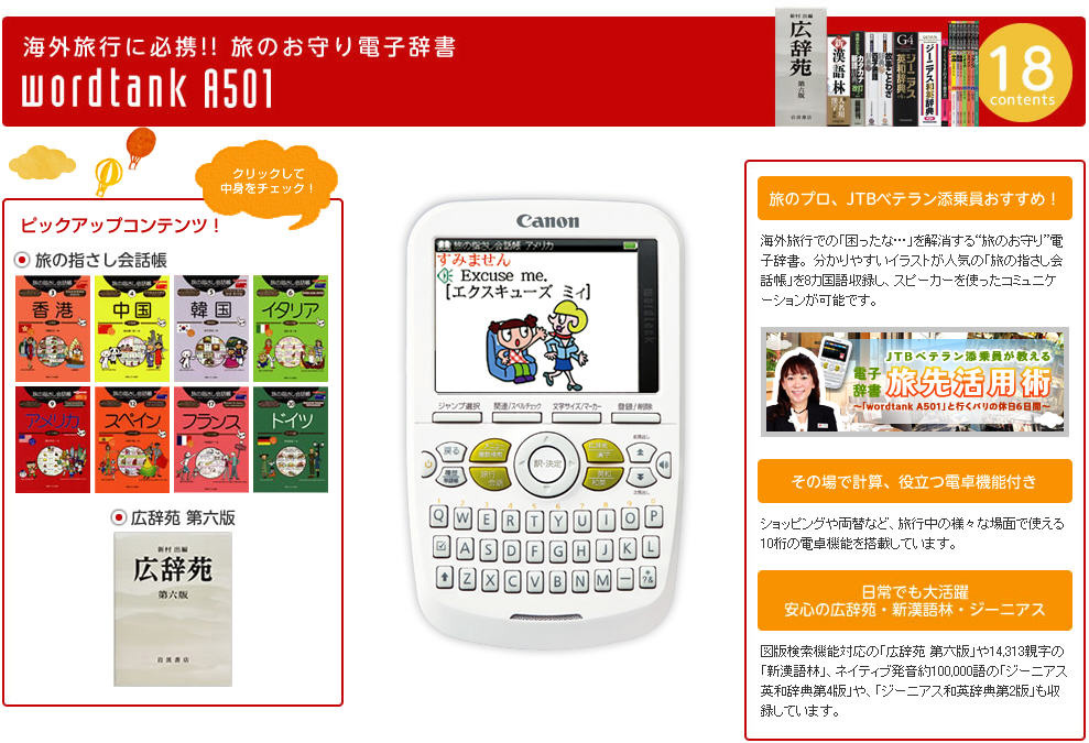 代購,Canon wordtank A501:::wordtank 10萬字母語發音收錄,廣辭苑,2.8吋彩色輕巧型電子辭書,發音,免運費,刷卡不加價或3期零利率
