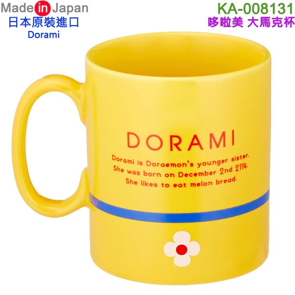 缺貨,kanesho KA-008131黃色(日本原裝):::日本製,金正陶器,Dorami,哆啦美,大臉,馬克杯,紀念杯,茶杯,咖啡杯,500ml,刷卡或3期,4964412008312