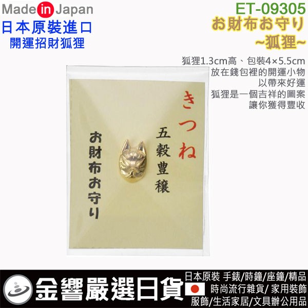 【金響日貨】現貨,ETOILE ET-09305(日本原裝):::日本製,狐狸,きつね,開運小物,財布守,錢包御守,錢包幸運符,刷卡或3期