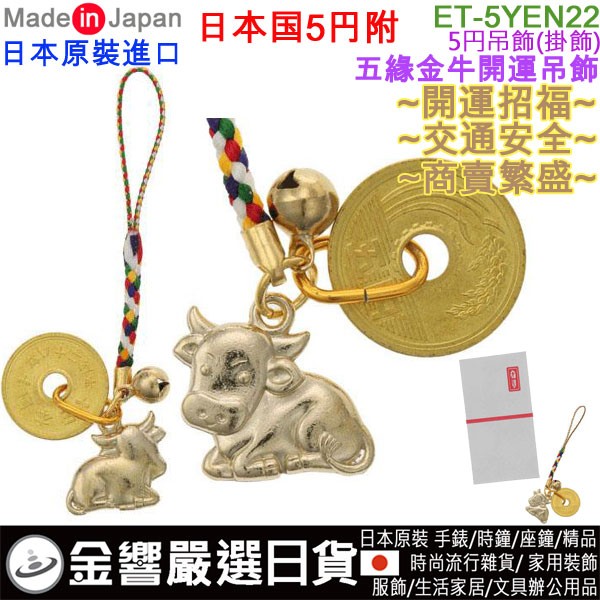 【金響日貨】現貨,ETOILE ET-5YEN22(日本原裝):::日本製,5円,五緣金牛開運吊飾,開運招福,交通安全,掛飾,吊飾,刷卡或3期