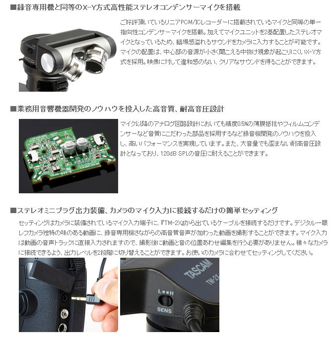 代購,TASCAM TM-2X(日本國內款):::數位單眼相機專用X-Y方式立體聲麥克風,刷卡或3期零利率,TM2X