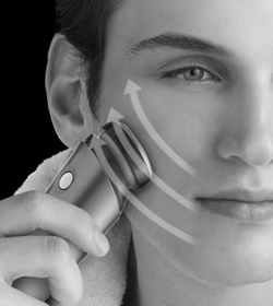 超音波は高出力であるほど効果があります。ソニックシェイプは独自の技術で安定した高出力を実現。フェイスラインに沿って、持ち上げるように滑らせるだけで、ソニックシェイプならではの高出力超音波が肌にハリを与え、フェイスラインをスッキリ引きしめます。