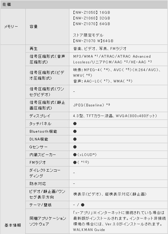 * NW-Z1070のみ