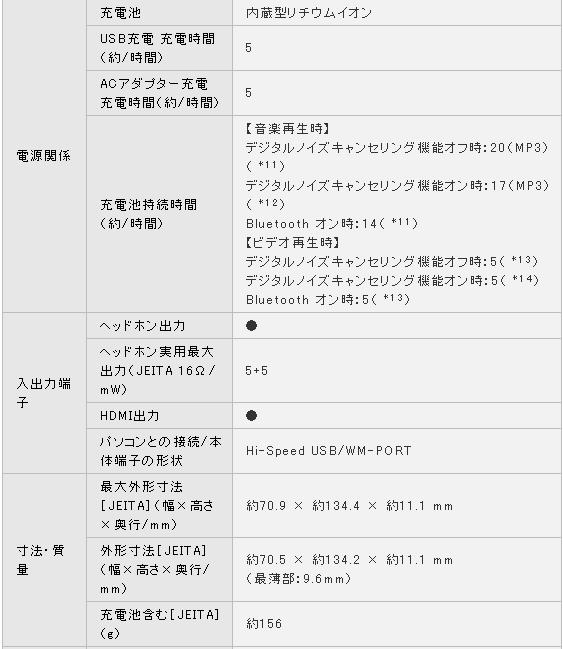 *1 内蔵充電池使用、MP3 128kbps再生時、デジタルノイズキャンセリング機能「オフ」の時の目安。設定条件により異なります