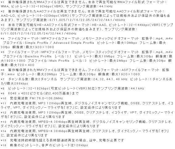 *2 内蔵充電池使用、MPEG-4 384kbps再生時再生時、デジタルノイズキャンセリング機能「オフ」の時の目安。設定条件により異なります