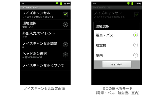 ※ 本体付属のヘッドホン、または別売のノイズキャンセリング機能搭載“ウォークマン”専用ヘッドホンMDR-NWNC33使用時に効果が最適になるよう設定されています