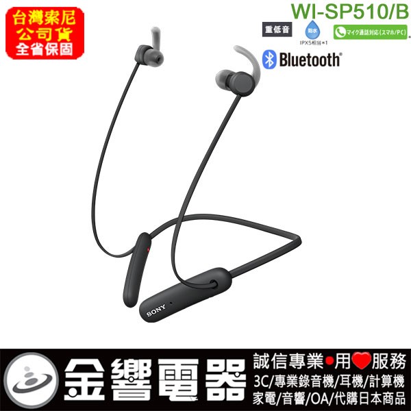 dot 【金響電器】現貨,SONY WI-SP510/B黑色(公司貨):::無線藍牙運動耳機,IPX5防水等級,免持通話,快速充電,刷卡或3期,WISP510