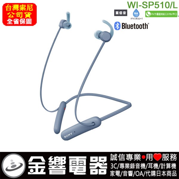 dot 【金響電器】現貨,SONY WI-SP510/L藍色(公司貨):::無線藍牙運動耳機,IPX5防水等級,免持通話,快速充電,刷卡或3期,WISP510