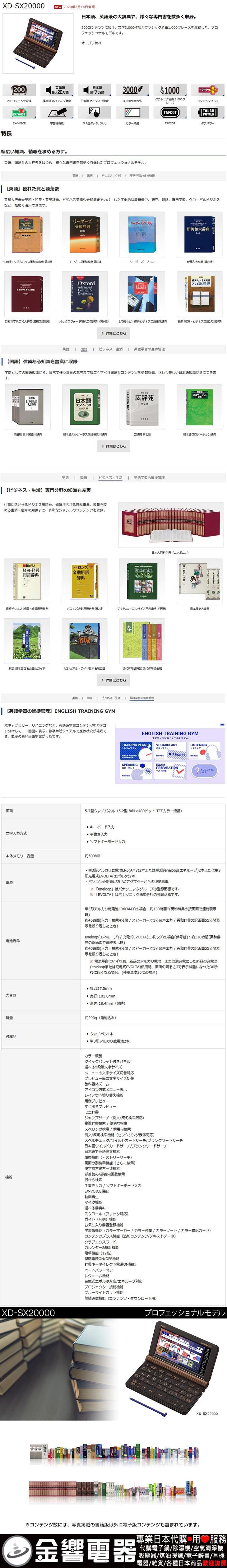 【金響代購空運】CASIO XD-SX20000(日本國內款):::2020年最新,EX-word,200本內容收錄電子辭書,專業款,彩色液晶搭載,手寫板,刷卡或3期,XDSX20000