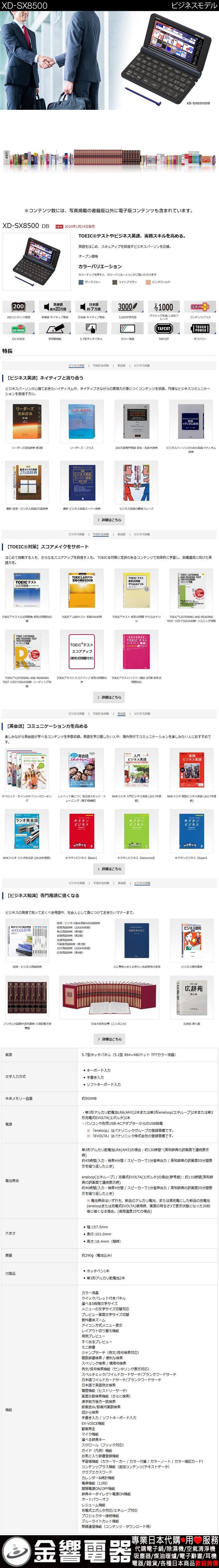 dot 【金響代購空運】CASIO XD-SX8500DB(日本國內款):::2020年最新,EX-word,200本內容收錄電子辭書,商務款,彩色液晶搭載,手寫板,刷卡或3期零利率,XDSX8500