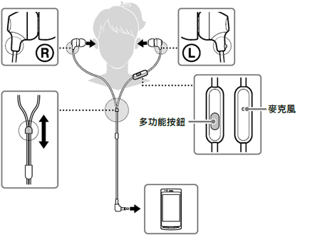 *請留意,部分智慧型手機或音樂播放器由於 3.5mm 耳機插頭配置不同,可能無法使用線控功能。請參閱您所使用的手機相關規格說明,以了解是否支援線控功能。