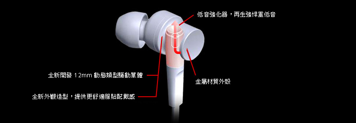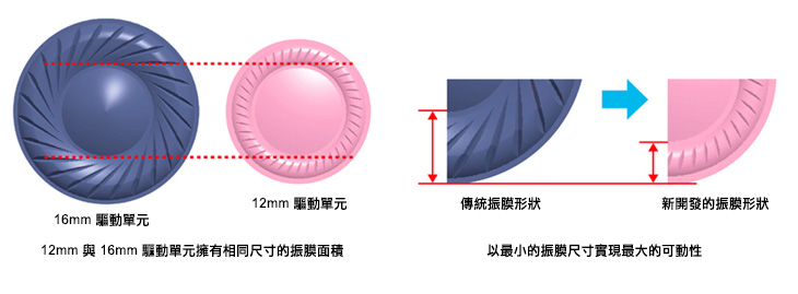 全新開發 12mm 動態類型驅動單元, 加強靈敏度,並減低雜音干擾
