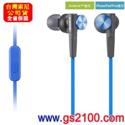 SONY MDR-XB50AP/L藍色(公司貨):::重低音入耳式立體聲耳機,支援Android,iPhone,Blackberry,刷卡或3期零利率,免運費,MDRXB50AP