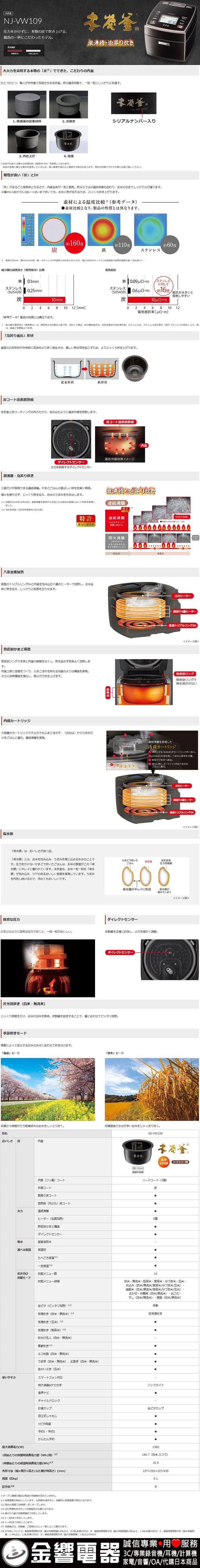 【金響代購】空運,MITSUBISHI NJ-VW109-B黒銀蒔(日本國內款):::日本製,三菱電機電子鍋,本炭釜,八重全面加熱,5.5合炊,6人份,刷卡或3期,NJVW109