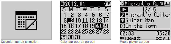 字檔案存取之際,日曆功能便自行開啟。這也就是說,只要開始檔案存取功能,檔案便會自行以日期予以歸類。除此之外,音樂檔案可自行複製於錄音筆上。母須藉由任何額外軟體將之存取於內。您可恣意的存取音樂檔案,並讀取音樂曲目以及演唱者清單。