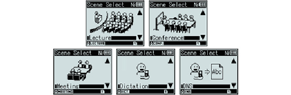 事宜的情景下進行錄音。您可藉由LCD上所顯示的場景模式選擇,進行錄音。您亦可自行選擇三種個人化的錄音場景模式設定。