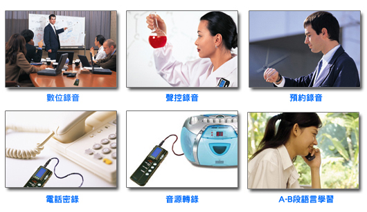 數位錄音、聲控錄音、電話密錄、音源轉錄、預約錄音功能 |