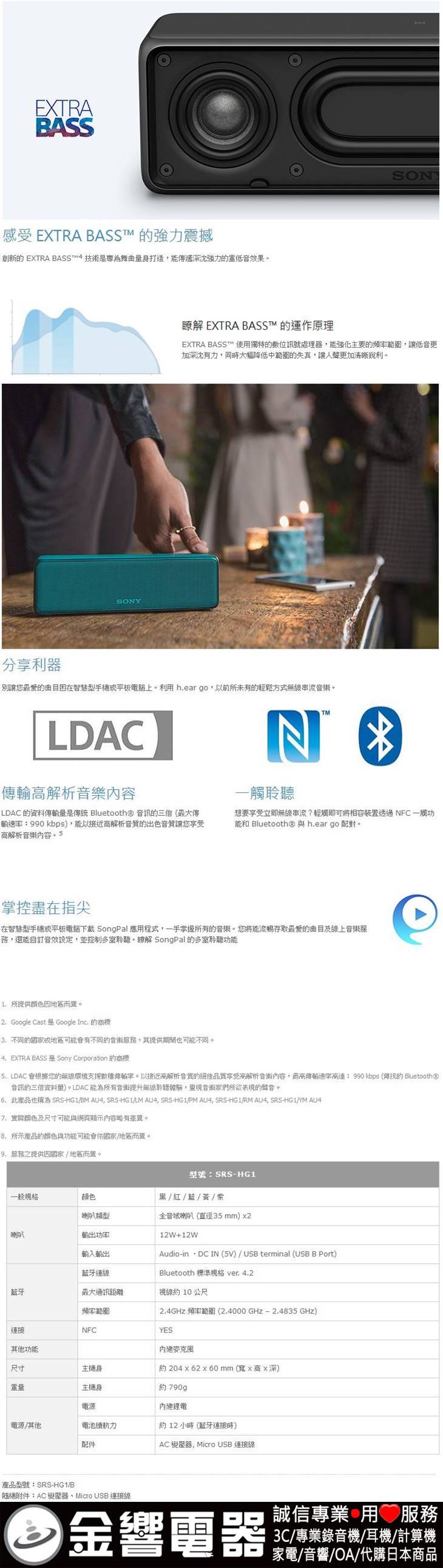 已完售SONY SRS-HG1/R紅色(公司貨):::[Bluetooth藍牙接續無線喇叭系統],NFC,免持通話,充電式,重低音,串聯左右聲道,音樂串流,Hi-Res,刷卡或3期零利率,SRSHG1