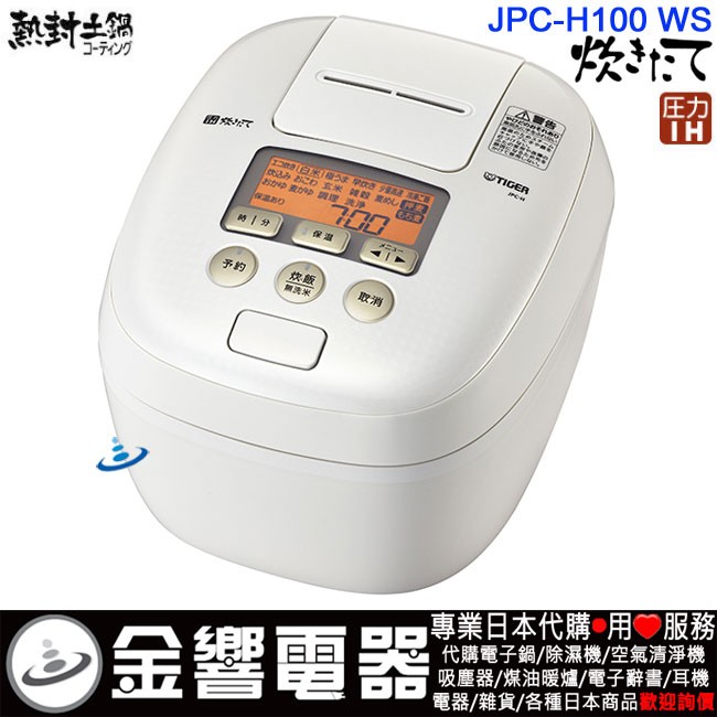 【金響代購】空運,TIGER JPC-H100WS(日本國內款):::2019年最新,日本製,虎牌,壓力IH電子鍋,圧力IH炊飯器,5.5合炊,6人份,炊きたて,360°デザイン,刷卡或3期,JPCH