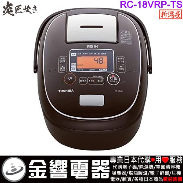 【金響代購】空運,TOSHIBA RC-18VRP-TS(日本國內款):::2020年最新,日本製,東芝,真空IH電子鍋,1升炊き,10人份,炎匠炊き,鍛造かまど銅釜,刷卡或3期,RC18VRP