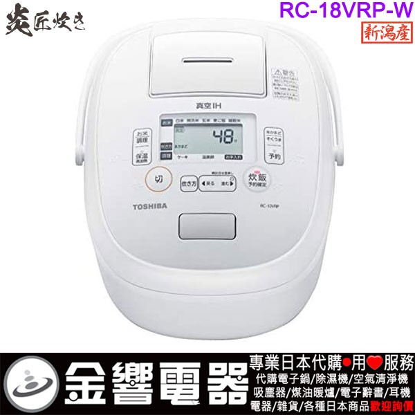 【金響代購】空運,TOSHIBA RC-18VRP-W(日本國內款):::2020年最新,日本製,東芝,真空IH電子鍋,1升炊き,10人份,炎匠炊き,鍛造かまど銅釜,刷卡或3期,RC18VRP