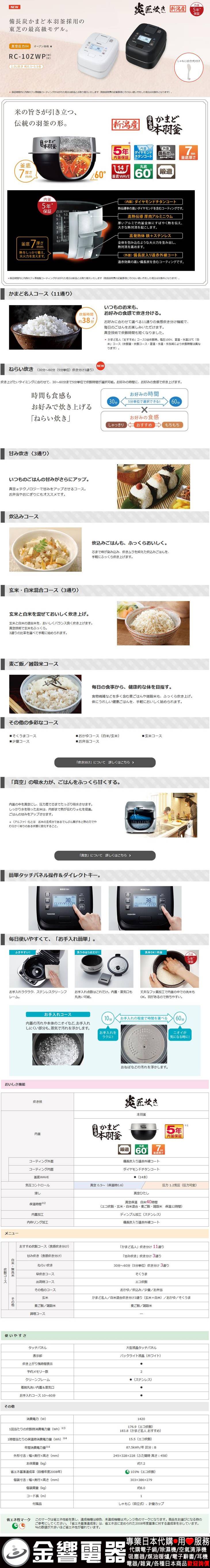 【金響代購】空運,TOSHIBA RC-10ZWP-W(日本國內款):::2020年最新,日本製,東芝,真空壓力IH電子鍋,5.5合炊,6人份,炎匠炊き,備長炭,本羽釜,刷卡或3期,RC10ZWP
