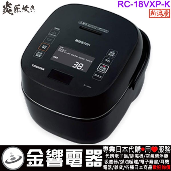 【金響代購】空運,TOSHIBA RC-18VXP-K(日本國內款):::2020年最新,日本製,東芝,真空壓力IH電子鍋,1升炊き,10人份,炎匠炊き,鍛造かまど備長炭釜,刷卡,RC18VXP