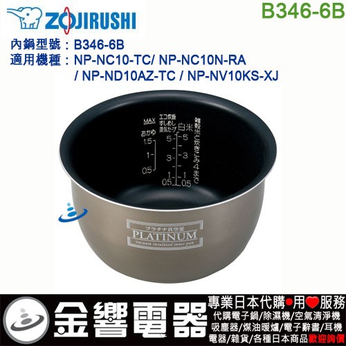 【金響代購】空運,ZOJIRUSHI B346-6B(日本國內款):::象印壓力IH電子鍋內鍋,NP-NC10,NP-NC10N,NP-ND10AZ,NP-NV10KS,專用line