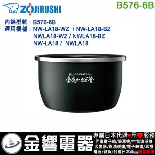 【金響代購】空運,ZOJIRUSHI B576-6B(日本國內款):::象印電子鍋內鍋,NW-LA18-WZ,NW-LA18-BZ,NWLA18專用