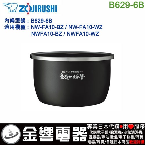 【金響代購】空運,ZOJIRUSHI B629-6B(日本國內款):::象印電子鍋內鍋,NW-FA10-BZ,NW-FA10-WZ,專用