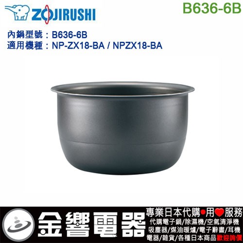 【金響代購】空運,ZOJIRUSHI B636-6B(日本國內款):::象印電子鍋內鍋,NP-ZX18-BA,NPZX18-BA,專用