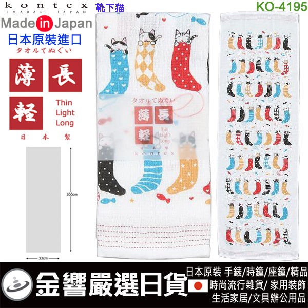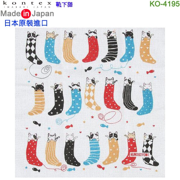 【金響日貨】kontex KO-4195 靴下貓(日本原裝):::日本製,今治毛巾,純棉毛巾,洗臉巾,洗澡巾,紗布巾,長毛巾,刷卡或3期