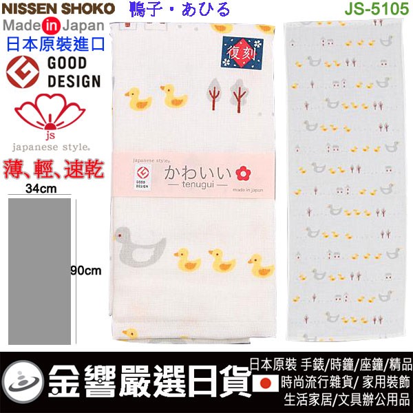 【金響日貨】nissen-shoko JS-5105 小鴨(日本原裝):::日本製,純棉毛巾,洗臉巾,洗澡巾,紗布巾,長毛巾,GOOD DESIGN受賞,刷卡或3期
