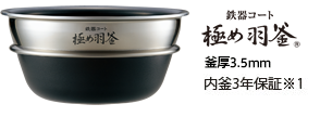 • ※1 内釜のフッ素加工は3年間無償交換します。取扱説明書の記載事項にそわない使い方をされた場合は対象外です。