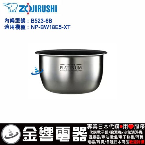 【金響代購】空運,ZOJIRUSHI B523-6B(日本國內款):::象印IH電子鍋內鍋,NP-BW18E5-XT專用